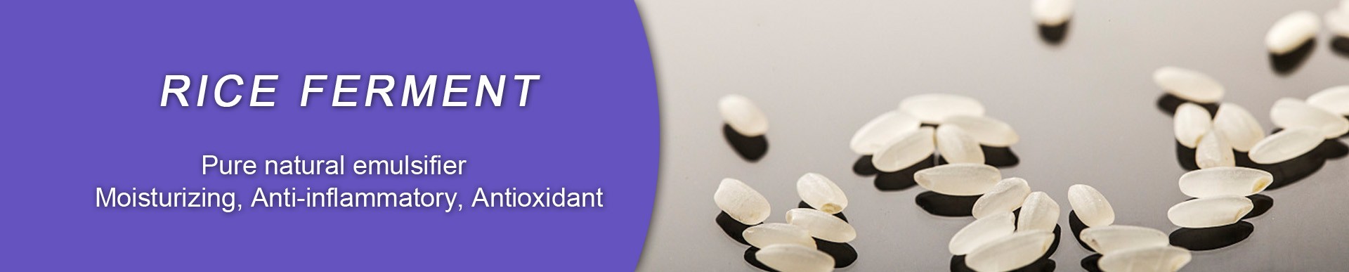 RICE FERMENT is a natural rice emulsifier with skin care functαions of moisturizing, anti-oxidation, a♠nti-inflammatory.