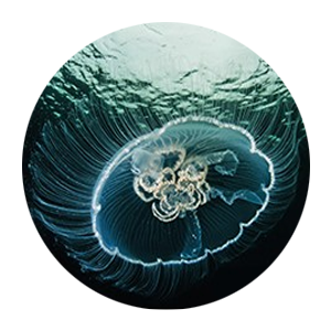 因其在海(hǎi)水(shuǐ)中像一(yī)輪神秘的(de)藍(lán)光(guāng)月(yuè)亮(liàng)而被稱為(wèi)“海(hǎi)月(yuè)”。